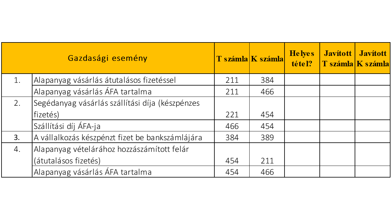 Döntse el a következő gazdasági eseményekről, hogy helyesek-e! Ha hibásak, akkor írja le a javított számlaszámot!