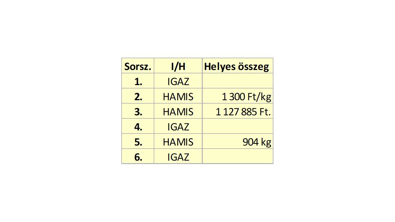 A megaddott információk alapján döntse el, hogy igazak vagy hamisak az alábbi állítások: