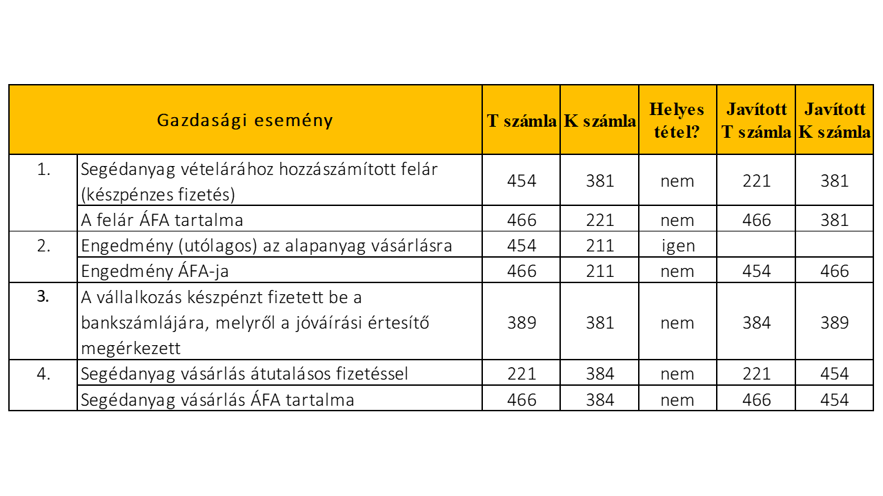Döntse el a következő gazdasági eseményekről, hogy helyesek-e! Ha hibásak, akkor írja le a javított számlaszámot!
